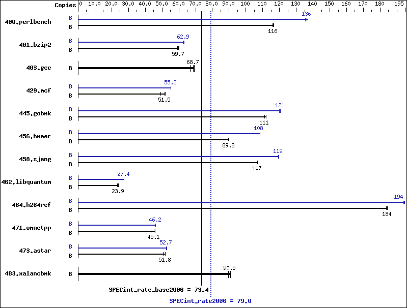 | 429.mcf | 8 | 1482 | 49.2 | 1417 | 51.5 | 1405 | 51.9 | 8 | 1319 | 55.3 | 1321 | 55.2 | 1322 | 55.2 |