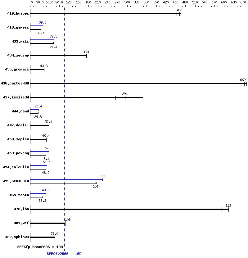 | 459.GemsFDTD: | -xAVX(pass 2) -prof-gen(pass 1) -ipo(pass 2) -O3(pass 2) -no-prec-div(pass 2) -prof-use(pass 2) -unroll2 -inline-level=0 -opt-prefetch -parallel |