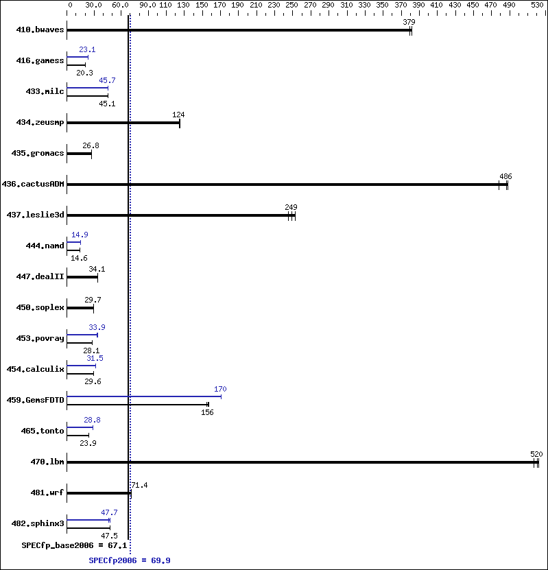 | 459.GemsFDTD | 68.7 | 154 | 67.9 | 156 | 67.7 | 157 | 62.1 | 171 | 62.3 | 170 | 62.3 | 170 |
